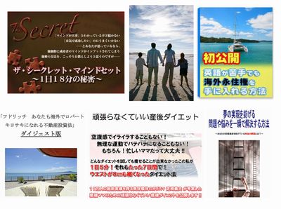 ステップメール(5回分)+レポートのセット3種類がパッケージ(記憶術、美肌、不眠)されています。