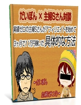 トップアフィリエイターの「だいぽん」さんと、アフィリエイト初心者の主婦Sさんとの対談音声特典です。